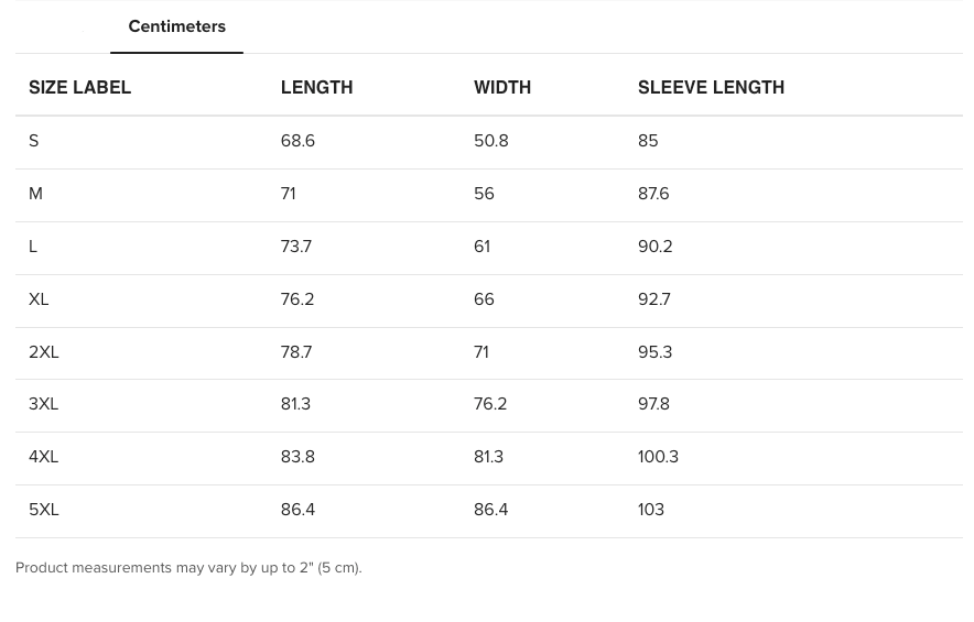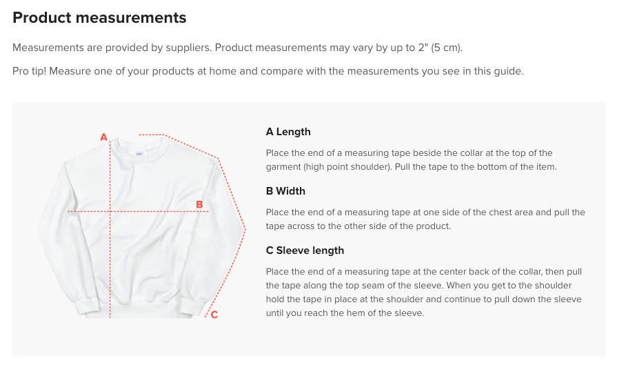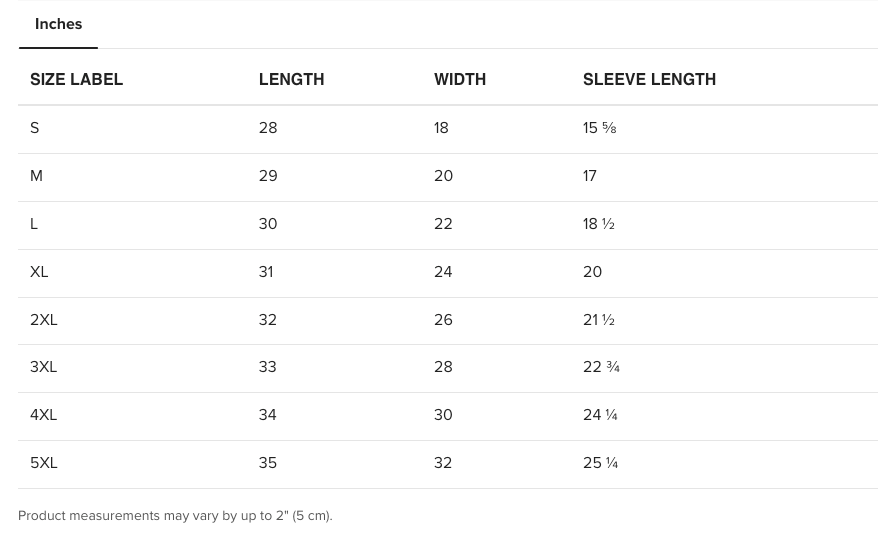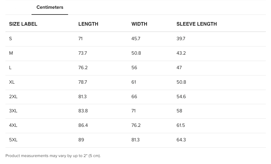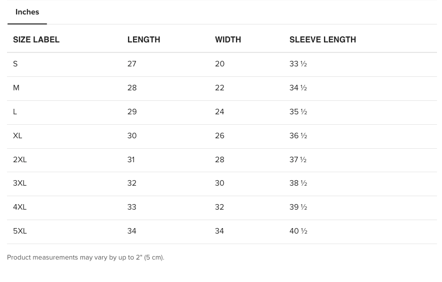 Sweathshirt Sizing Chart